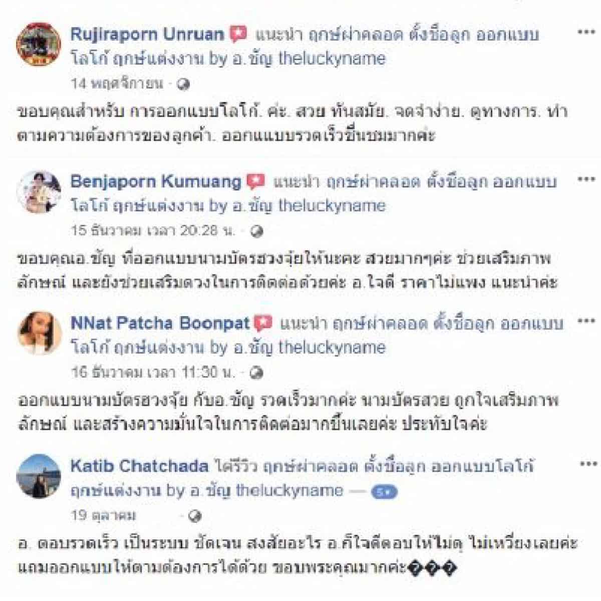 **หมายเหตุ : ใช้ระยะเวลาในการออกแบบโลโก้ 3-5 วันทำการ ในส่วนของแพคเกจ 3 และ 4 ใช้ระยะเวลาตั้งชื่อ 1-2 วันทำการ และนามบัตร 2-3 วันทำการ หากด่วนสามารถแจ้งได้
