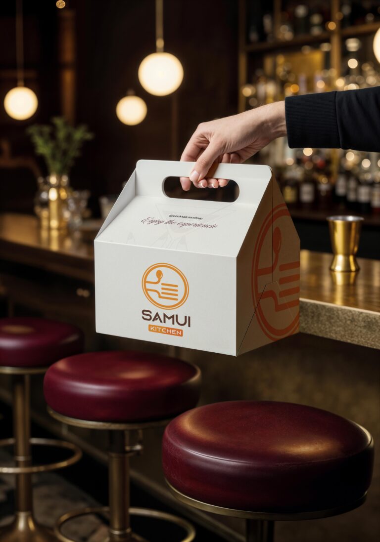 จากที่ได้ออกแบบโลโก้ร้านอาหารไทยตามองค์ประกอบหลักข้างต้นไปแล้วนั้น ทางเจ้าของร้านได้นำโลโก้ร้านอาหาที่ทางTheluckyname ออกแบบให้ ไปทำการเปิดกิจการ โดยดีไซน์คอนเซปท์ของร้าน การตกแต่ง และโทนสีของยูนิฟอร์มพนักงานให้มีความเข้ากันอย่างลงตัว และเมื่อได้เปิดกิจการอย่างเป็นทางการแล้ว ภายในระยะเวลาไม่นาน ทางเจ้าของกิจการที่ออกแบบโลโก้ไปนั้น ได้กลับมาใช้บริการซ้ำ และรีวิวออกแบบโลโก้ว่าร้าน Samui Kitchen มียอดขายทะลุเป้า สูงถึง 150 ล้านบาทต่อเดือน นับเป็นยอดขายที่ปังสุด ๆ เราไปดูผลงานออกแบบโลโก้ของร้าน Samui Kitchen ซึ่งเป็นโลโก้ร้านอาหารสุดปังกันค่ะ